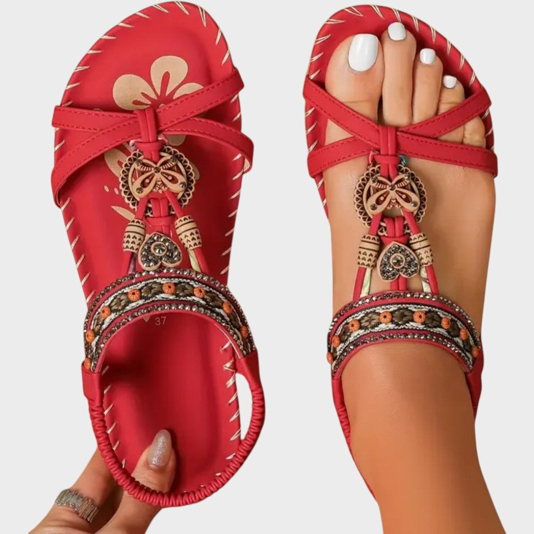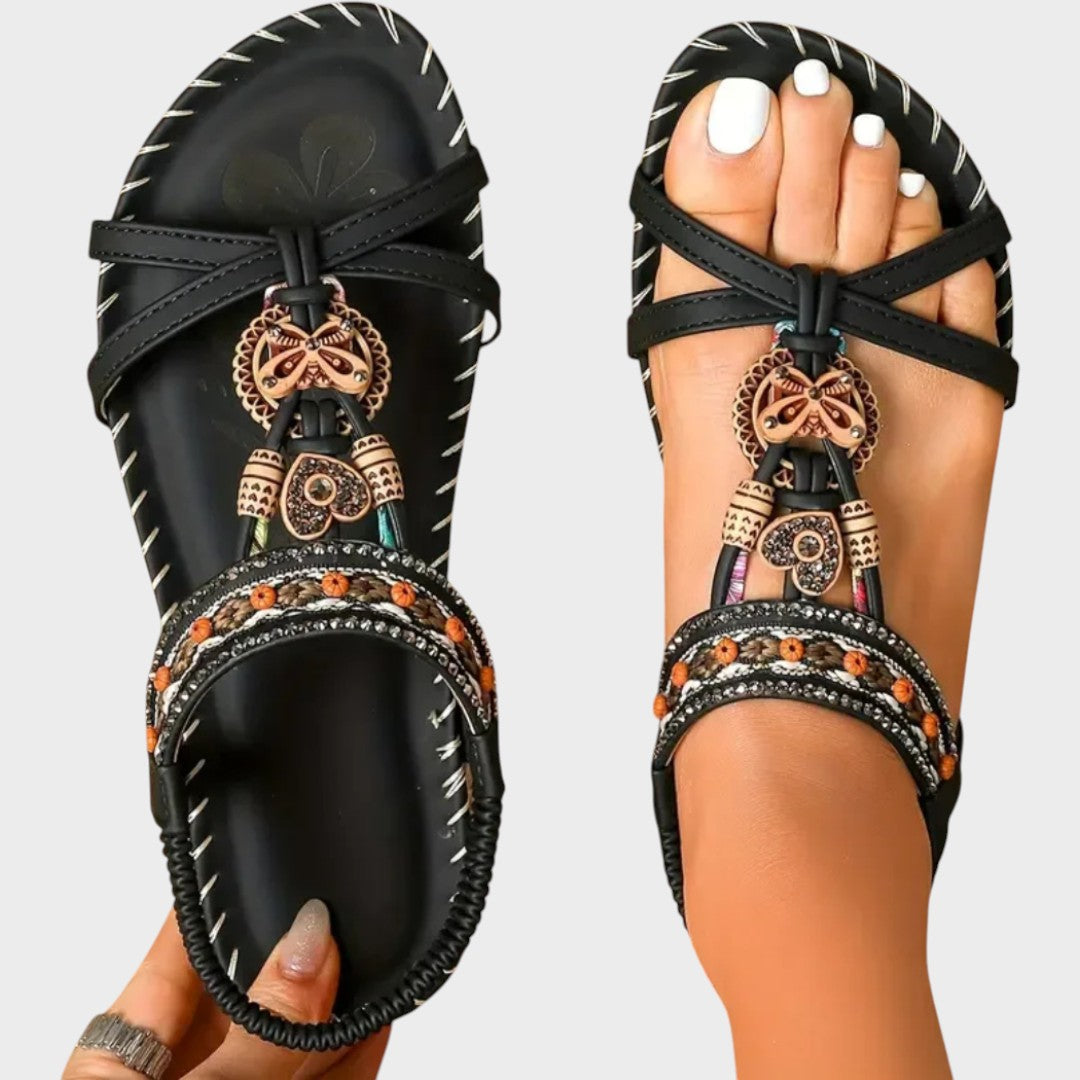 Ove ortopedske sandale savršeno spajaju udobnost i stil. Dizajnirane su s ergonomskim potplatom koji pruža potporu stopalu i olakšava cjelodnevno hodanje. Dekorativni detalji dodaju dašak sofisticiranosti, dok fleksibilna izrada omogućuje prirodno kretanje. Idealne su za svakodnevnu upotrebu, ali i za posebne prilike kada želite izgledati moderno, a istovremeno uživati u udobnosti.
