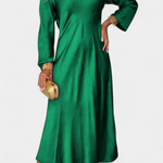 Elegantna, svestrana i bezvremenska, Martina haljina ističe se svojom sofisticiranom jednostavnošću. Njezina fluidna silueta, V izrez i dugi rukavi stvaraju odjevni predmet koji se prirodno prilagođava kako proslavama, tako i večerama s opuštenim stilom.