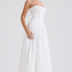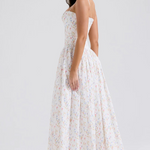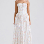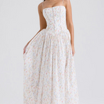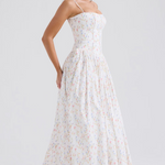 Elegantna cvjetna haljina koja ističe ženstvenost s romantičnom notom. Prilagođeni korzet s vertikalnim šavovima naglašava siluetu, dok široka suknja pruža udobnost i pokret. Idealna za proljetne i ljetne prilike, od svakodnevnih šetnji do elegantnih poziva.