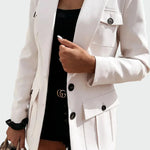 Sako s rafiniranim dizajnom koji pruža dinamičan i moderan stil. Ima klasične rever, dugmad sprijeda i praktične džepove s preklopom. Idealno za poslovne prilike, ali i za ležernije kombinacije, dodaje profinjenost i eleganciju svakoj prilici.