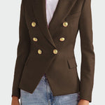 Impresivan sako s krojem koji naglašava siluetu i ističe stil. Ima elegantan rever, dvostruko prednje zatvaranje s gumbima i dva bočna džepa s preklopom. Njegov bezvremenski dizajn čini ga idealnim za poslovne prilike, kao i za večernje izlaske, pružajući sigurnost i profinjenost u svakoj prilici.