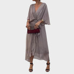 Ova elegantna haljina od čipke savršen je spoj sofisticiranosti i ženstvenosti. S prozračnim rukavima i lepršavim krojem, pruža dozu glamura bez narušavanja udobnosti. Duboki V-izrez i detalji u struku ističu figuru na nježan i profinjen način, čineći ovu haljinu idealnim izborom za večernje izlaske, svečanosti ili posebne događaje.