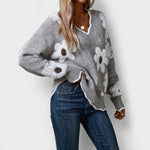 Pulover Ema kombinira udobnost s lakoćom elegancije, čineći ga istaknutim komadom za hladnije dane. Dizajniran s laskavim V-izrezom i chic cvjetnim uzorkom, donosi šarm i sofisticiranost vašoj svakodnevnoj garderobi. Mekan, lagan i jednostavan za nošenje, Ema vas drži toplima bez osjećaja težine — savršen za ležerne trenutke i dotjerane prigode.