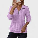 Otkrijte dugi rukav zamišljen da vam pruži toplinu, udobnost i laskavu siluetu u jednom. Mekana tekstura pletene tkanine i elegantna polu-zatvarač detalj stvaraju pažljiv izgled, dok ležeran kroj nježno pada na trbuh i ruke, pružajući učinak mršavljenja bez dodatnog volumena.