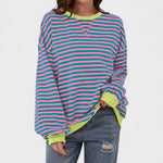 Ovaj udoban i moderan džemper s dugim rukavima i okruglim izrezom idealan je za svakodnevne kombinacije. Klasičan prugasti uzorak nikad ne izlazi iz mode, a opušten kroj osigurava maksimalnu udobnost i stil. Jednostavan je za kombiniranje s trapericama, suknjama ili casual hlačama, što ga čini nezaobilaznim komadom u tvojoj garderobi.