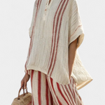 Opustite se s morskim karakterom. Odijelo Daisy kombinira široku bluzu s V izrezom i široke hlače s vertikalnim prugama koje produžuju siluetu. Njegov fluidni dizajn i tkaninski materijal čine ga idealnim izborom za uživanje u svijetlim danima s udobnošću i stilom.