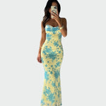 Impozantna i ženstvena haljina s jedinstvenim cvjetnim uzorkom koja ističe siluetu na rafiniran način. Dekolte s drapiranim detaljem daje eleganciju, dok uski kroj naglašava obline. Idealna za posebne prigode, večernje izlaske i elegantne pozive.