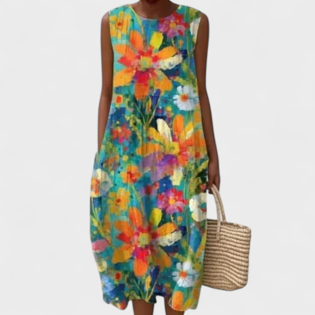Ova lagana i prozračna haljina savršeno kombinira stil i praktičnost, dajući vam slobodu kretanja i sofisticiran izgled u svim prigodama. Njezin opušteni kroj i cvjetni uzorak čine je idealnim izborom za plažu, šetnju gradom ili ljetne susrete.