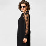 Ova elegantna čipkasta haljina stvorena je za žene koje žele izgledati profinjeno i samouvjereno u svakoj prilici. Prozirni rukavi s čipkastim detaljima dodaju dašak romantične elegancije, dok udoban kroj osigurava slobodu kretanja i besprijekoran izgled. Idealna je za svečane trenutke, večernje izlaske ili posebne događaje.