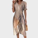 Ove ženske ljetne haljine savršen su spoj lepršavosti i praktičnosti. Lagani materijal i ženstveni kroj osiguravaju udobnost tokom vrućih dana, dok raznoliki uzorci i boje omogućuju da svaka žena pronađe idealan model za svoj stil. Zahvaljujući midi duljini i V-izrezu, haljina je jednako prikladna za plažu, gradsku šetnju ili večernji izlazak.