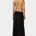 S suptilnim sjajem i očaravajućom siluetom, haljina Ana stvorena je da se istakne na svakom elegantnom događaju. Njezin drapirani halter izrez i potpuno otkrivena leđa nude savršen balans između sofisticiranosti i senzualnosti, dok traka od šljokica dodaje dašak rafiniranog luksuza.
