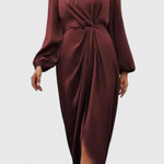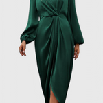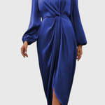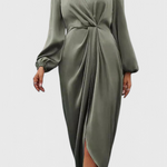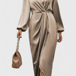 Uđite u eleganciju noći s Giadom, haljinom fluidnog kroja dizajniranom da istakne i očara. S dubokim V-izrezom, mekim napuhanim rukavima i naboranom strukom koja naglašava figuru, Andrea donosi sofisticiranost u svaki pokret. Bočni raskorak dodaje modernu i zavodljivu notu, savršenu za noći koje zahtijevaju nezaboravan stil.