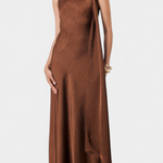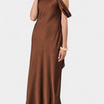 Dragica Asimetrična Duga Haljina u Brončanoj Boji