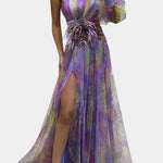 Teodora Asimetrična Maxi Haljina s Jednim Rame i Umjetničkim Uzorkom