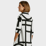 Istaknite svoj stil ovom upečatljivom haljinom s geometrijskim uzorkom. Kombinacija klasičnog kroja košulje i suvremenog dizajna čini je savršenim izborom za žene koje žele spoj elegancije i udobnosti. Lepršavi kroj omogućava slobodu pokreta, dok upečatljiv uzorak daje dašak umjetničkog i urbanog šarma.